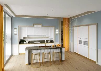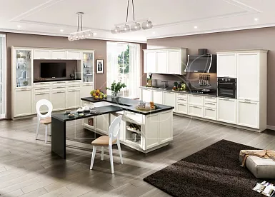 Очень благородно и дорого смотрятся классические модели с отделкой в виде лепнины, позолоченных элементов, резьбы. Конечно, для такой кухни потребуется большое пространство с высокими потолками и широкими окнами.