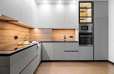 Фасады для кухни должны отличаться привлекательностью, высокой прочностью и практичностью. Данные характеристики зависят от материалов, используемых для производства и способов отделки. В этом материале разберем самые популярные виды фасадов и их особенности.