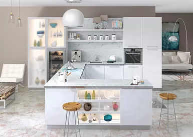 Самый эстетичный материал – натуральный камень, например, гранит или мрамор. Он очень красив, благородно смотрится и служит десятками лет. Поэтому купить кухню со столешницей из камня будет хорошим решением. Однако нужно учитывать, что такой материал хрупок и может образовывать сколы при сильных ударах. Искусственный камень такими минусами не обладает. По внешнему виду он ничем не отличается от натурального, но гораздо более долговечен и устойчив к механическим повреждениям и агрессивным чистящим средствам.