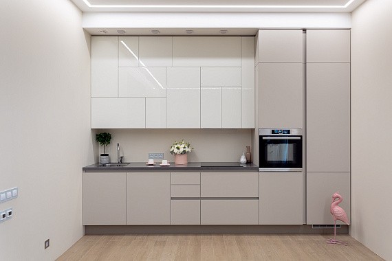 Линейная планировка часто используется в квартирах-студиях, где важно сохранить открытое пространство. Подобный гарнитур легко адаптируется под стили «минимализм» или «сканди», а значит — будет органично смотреться в любом современном интерьере.