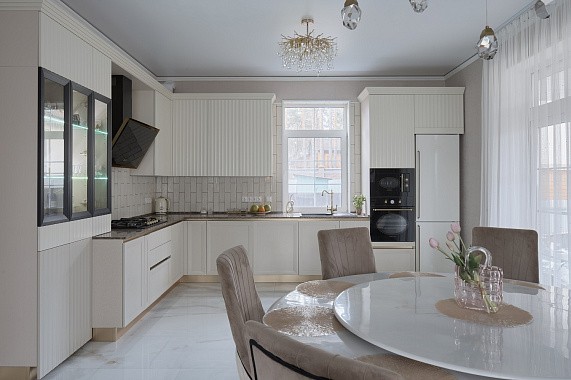 Г-образная кухня подходит для помещений нестандартной формы, включая комнаты с окнами в углу, нишами, колоннами или выступами. Правильный подход к проектированию позволит сделать такую кухню функциональной и гармоничной.
