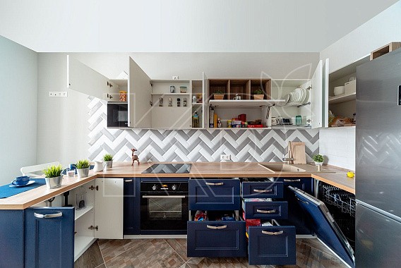 Синяя кухня в интерьере – интересное решение, которое точно не останется без внимания. Такой гарнитур станет изюминкой помещения. Богатая палитра оттенков синего позволяет подобрать подходящий вариант для комнаты любого размера и планировки