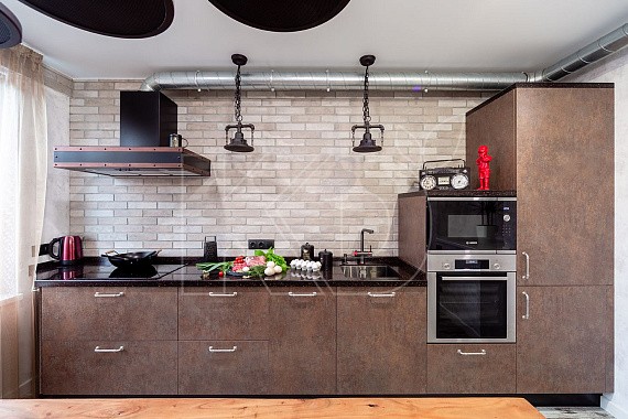 После этого мастера приступают к производству корпуса, столешницы и фасадов. В разобранном виде кухонный гарнитур доставляется до заказчика, и уже на его территории осуществляется сборка. Любой вариант встроенной кухни под потребности заказчика готовы выполнить специалисты бренда «Кухонный двор».